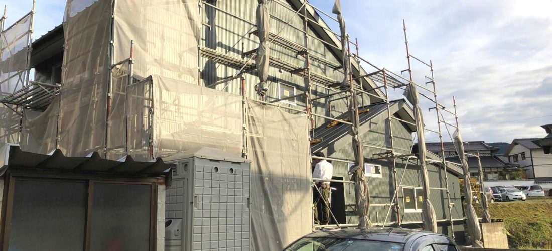 高梁市伊賀町のリノベーションも終盤に差し掛かってきました。外壁は張られたのですが、東側は吹き付けをする予定なので、まだ足場は取れていません。